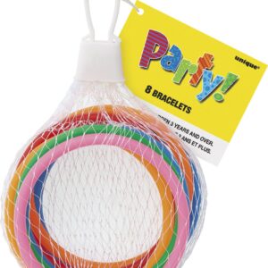12 pulseiras com cerca de 28cm em cores sortidas brilhantes. 3 pulseiras em ouro, rosa, verde e azul.