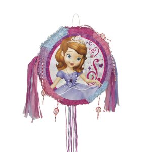 A pinhata tem uma abertura para colocar os brindes e doces, e depois de pendurar basta puxar os fios em baixo para romper e os brindes caírem.